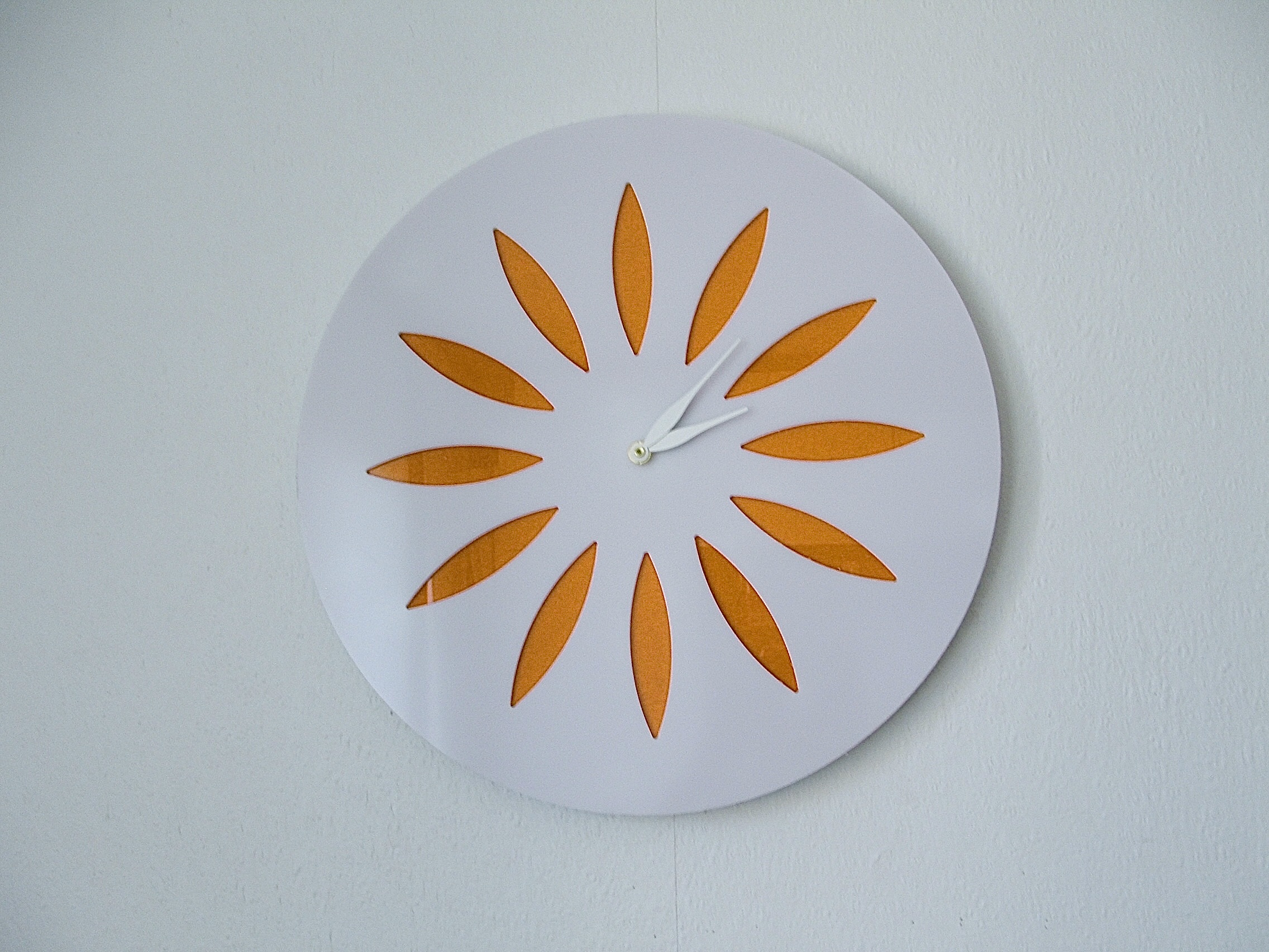 unike Wanduhr mit anmutender Blattoptik, stilvoll in hochwertigen Kunsstoffmaterialien verarbeitet. Mit geräuschlosem Quarz-Uhrwerk von Junghans.